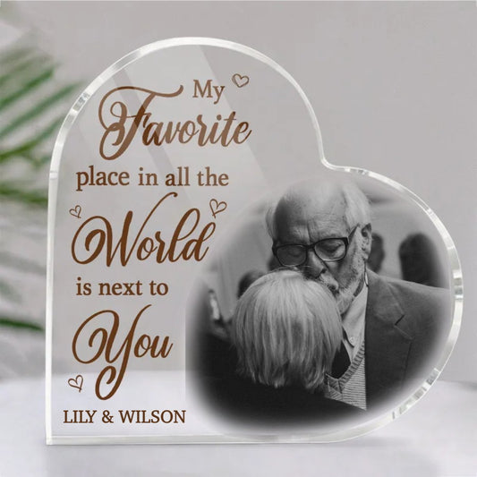 Couple - Custom Photo My Favorite Place In All The World Is Next To You - Personalized Heart Acrylic Plaque (II)