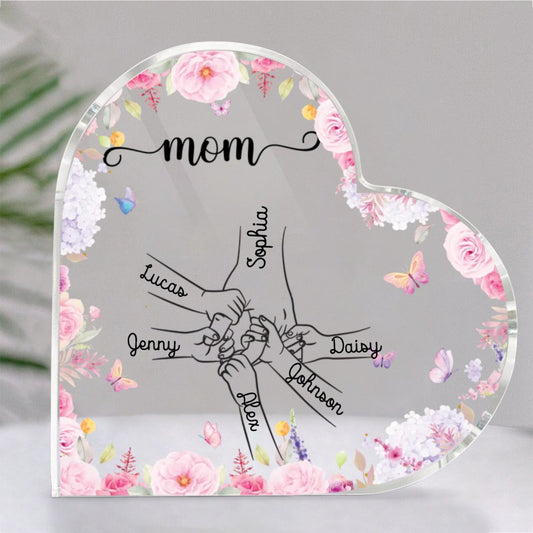 Family - Holding Mom's Hand - Personalized Heart Acrylic Plaque