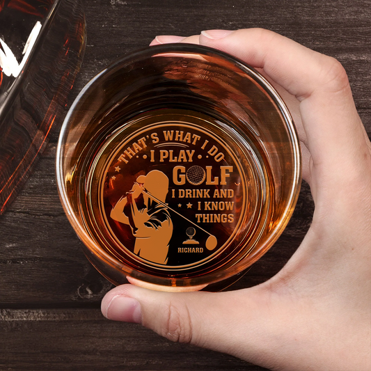I Play Golf I Drink And I Know Things - Personalized Engraved Whiskey Glass