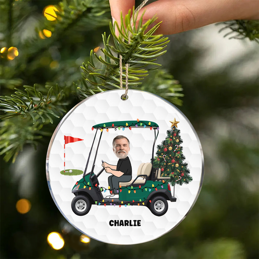Custom Photo Funny Face Golf Cart - Personalized Circle Acrylic Ornament
