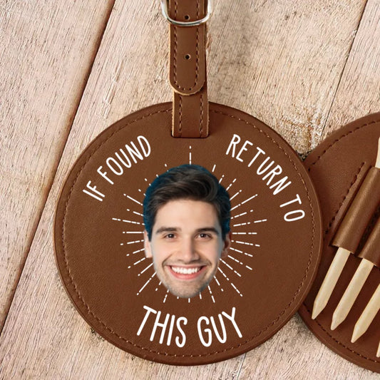Golf Lovers - If Found Return To This Guy - Personalized Leather Golf Bag Tag