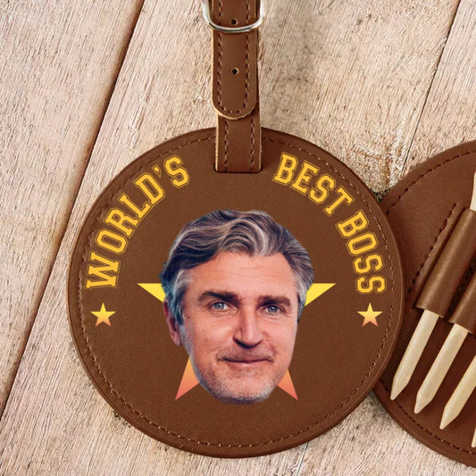 Golf Lovers - World's Best Boss - Personalized Photo Leather Golf Bag Tag