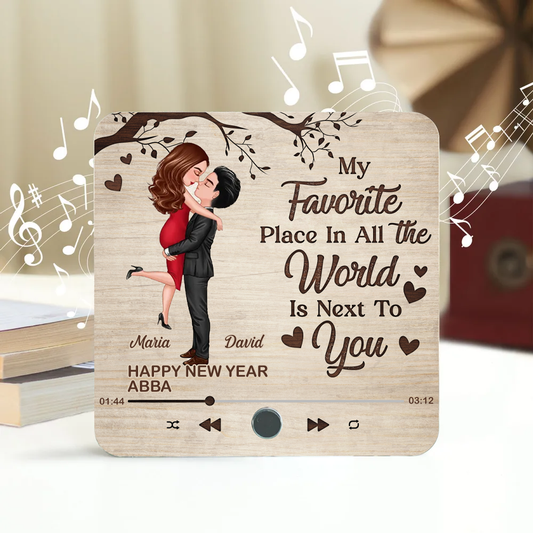 Favorite Place In The World Couple Hugging Kissing Personalized Music Fridge Magnet, Gift For Him, For Her, For Valentine's Day