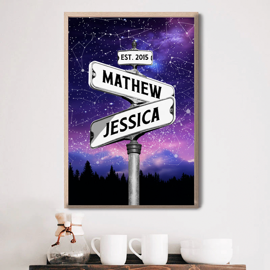 Couple Constellation Custom Star Map Street Sign Personalized Poster, Perfect Home Decor, Engagement Gift Wedding Gift Anniversary Gift For Couple