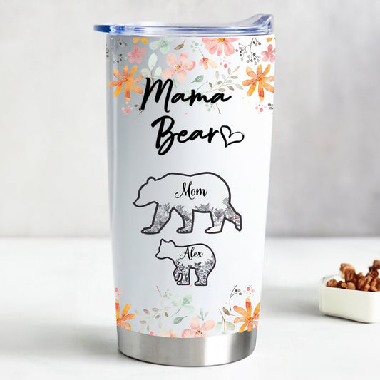 Floral Mama Bear 20oz Stainless Steel Tumbler - Customizable Insulated Cup