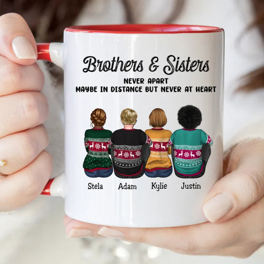 Brothers & Sisters - Brothers & Sisters Never Apart Maybe In Distance But Never At Heart - Personalized Accent Mug (TB)
