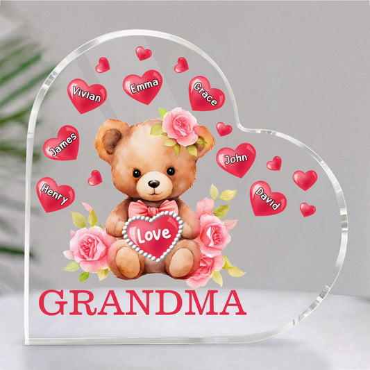 Grandma/Mom - Mama Bear With Heart Kids - Personalized Heart Acrylic Plaque
