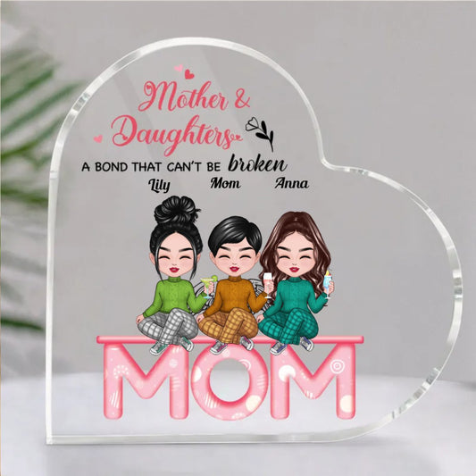 Family - The Love Between Mother & Daughters Is Forever - Personalized Acrylic Plaque (HEART)