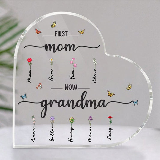 Mother - First Mom Now Grandma - Personalized Heart Acrylic Plaque (L)