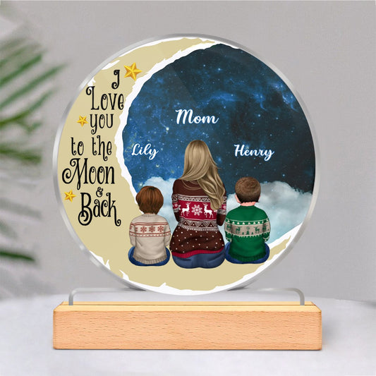 Mother - I love you to the moon and back - Personalized Circle Acrylic Plaque (II)