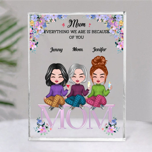 Family - Mum, Everything We Are Is Because Of You - Personalized Acrylic Plaque (NM)