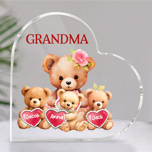 Grandma - Mama Bear With Little Kids - Personalized Heart Acrylic Plaque