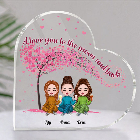 Family - I Love You To The Moon And Back - Personalized Acrylic Plaque (HEART)