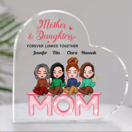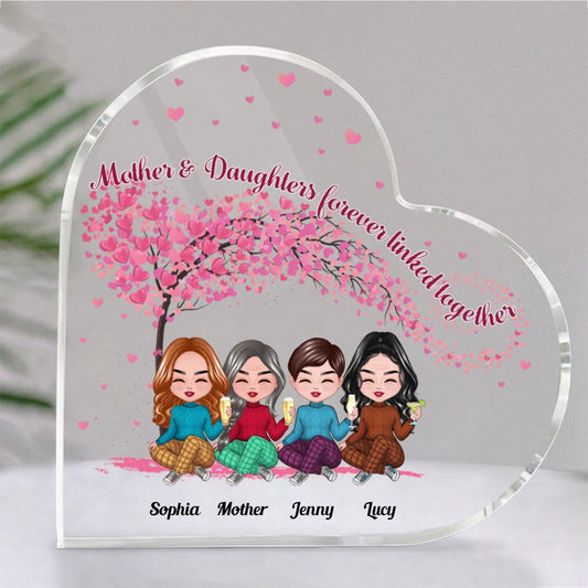 Family - Mother & Daughters Forever Linked Together - Personalized Acrylic Plaque (HEART)