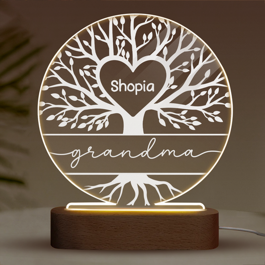 Grandma Family Tree Name Personalized Circle Acrylic Plaque With LED Night Light - Gift for Grandma, Nana, Mom