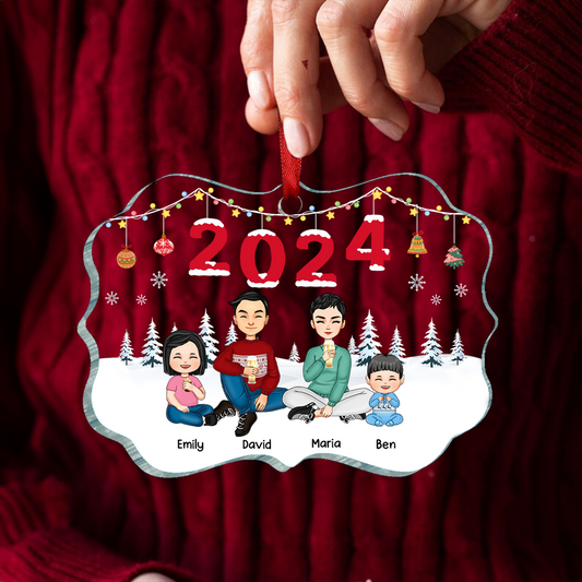 2024 Christmas Cartoon Family Dog Cat - Personalized Acrylic Ornament