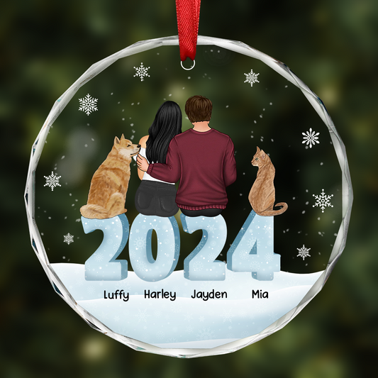 2024 Christmas Couple Dog Cat - Personalized Circle Acrylic Ornament
