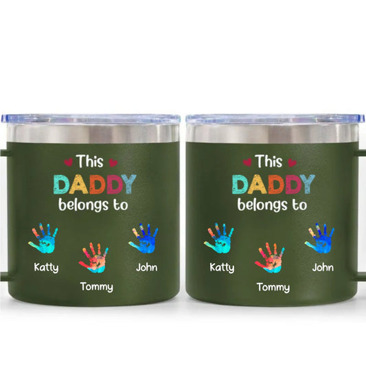 14oz Family - This Daddy Grandpa Belongs To - Personalized 14oz Stainless Steel Tumbler With Handle
