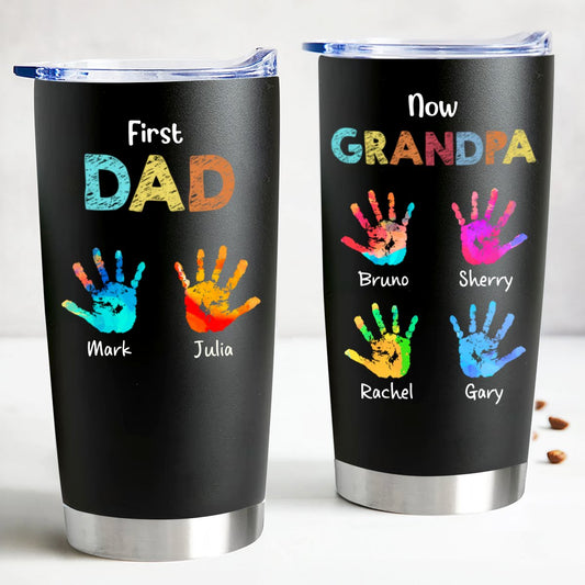 20oz Family - First Dad Now Grandpa Handprints - Personalized Tumbler (BL)