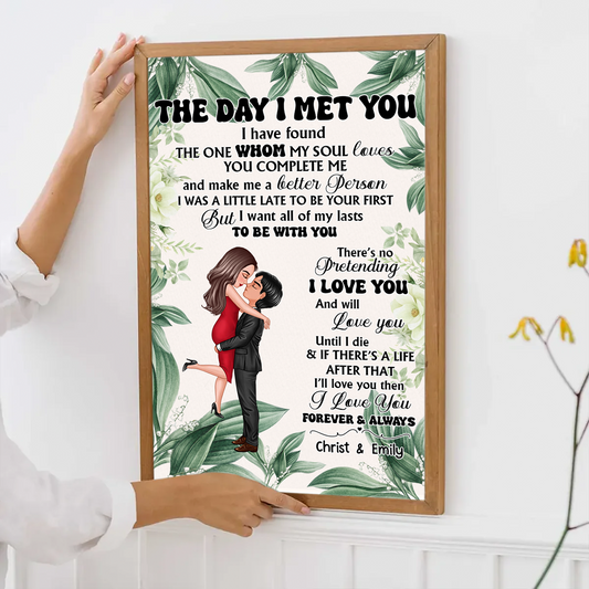 Doll Couple Hugging Kissing The Day I Met You Gift For Him For Her Personalized Vertical Poster
