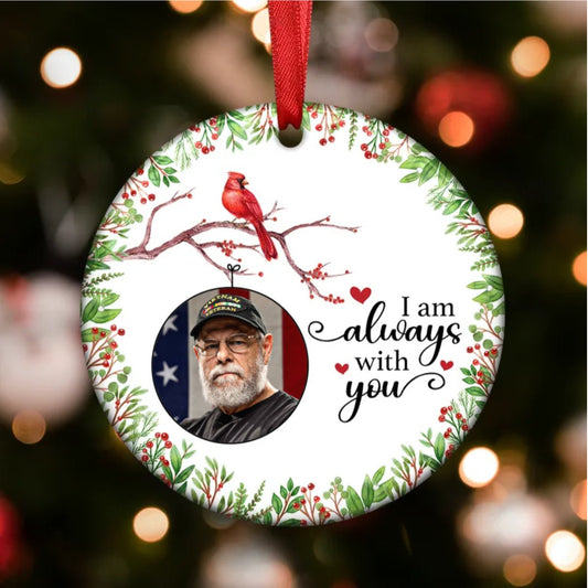 Family - Always With You Holly Branch Cardinal - Personalized Circle Ornament