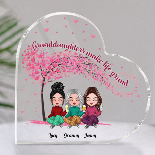 Family - Granddaughters Make Life Grand - Personalized Acrylic Plaque (HEART)