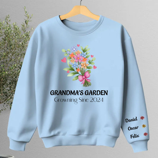 Family - Grandma‘s Garden Beautiful Vintage Birth Month Flowers Bouquet - Personalized Sleeve Printed Sweatshirt