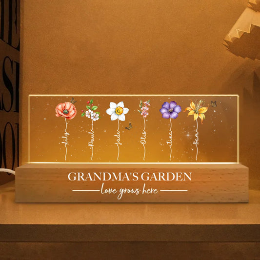 Family - Grandma‘s Garden Birth Month Flower - Personalized Acrylic LED Lamp Night Light