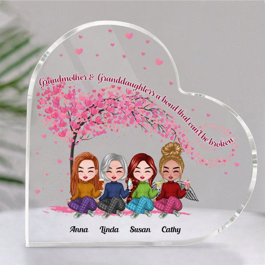 Family - Grandmother & Granddaughters A Bond That Can't Be Broken - Personalized Acrylic Plaque (HEART)