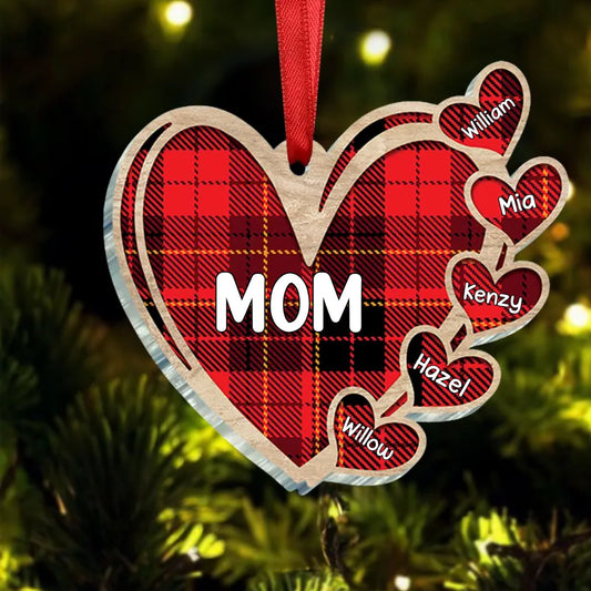 Family - Grandma, Nana, Mom Heart Kids - Personalized Ornament