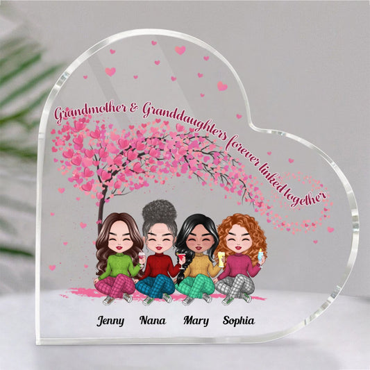 Family - Grandmother & Granddaughters Forever Linked Together - Personalized Acrylic Plaque (HEART)