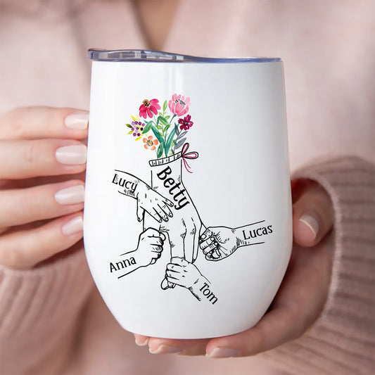 Family - Holding Flowers Hand - Personalized Wine Tumbler
