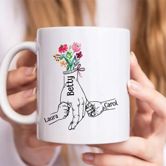 Family - Holding Flowers Hand - Personalized Mug