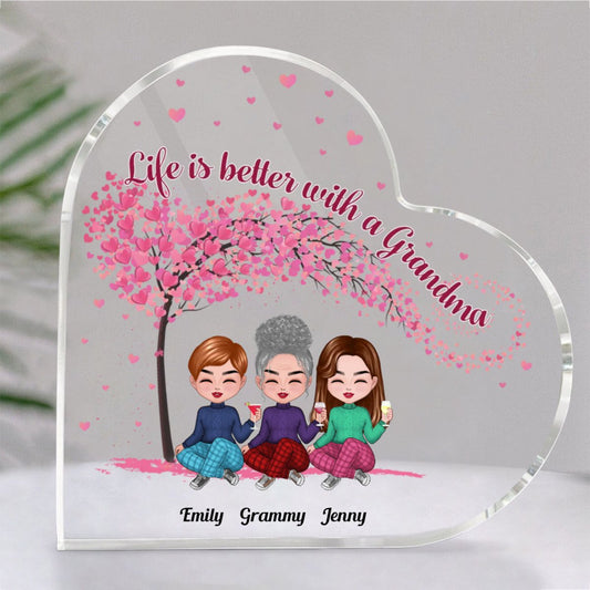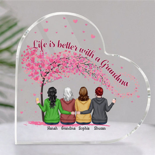 Family - Life Is Better With A Grandma - Personalized Acrylic Plaque (HEART)