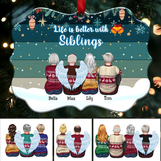 Family - Life Is Better With Siblings - Personalized Christmas Ornament (Ver 2)