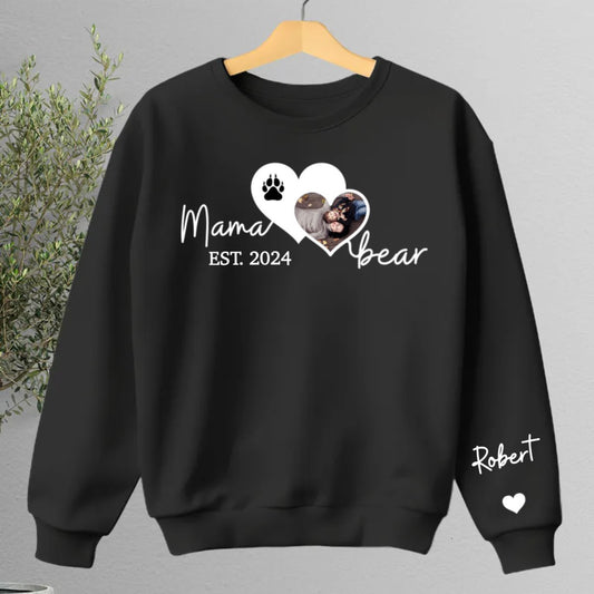 Family - Mama Bear Shirt With Kid Names On Sleeve - Personalized Sweater