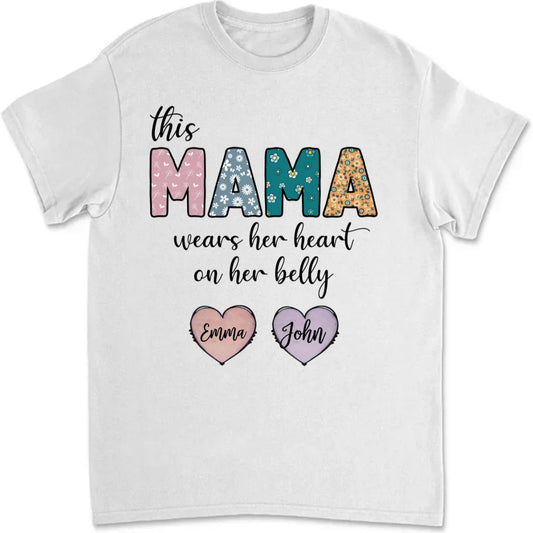 Family - This Mama Wear Her Heart On Her Belly - Personalized Unisex T-shirt