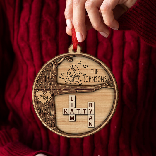 Family Tree Crossword Puzzle Art, Personalized 2-Layered Wooden Ornament