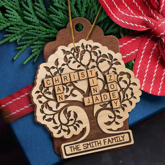 Family Tree Of Life Crossword Wood Ornament, Personalized Family Wood Ornament