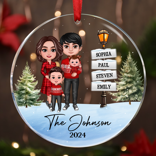 Family Sitting Together - Family Personalized Custom Ornament - Acrylic Snow Globe Shaped - Christmas Gift For Family Members