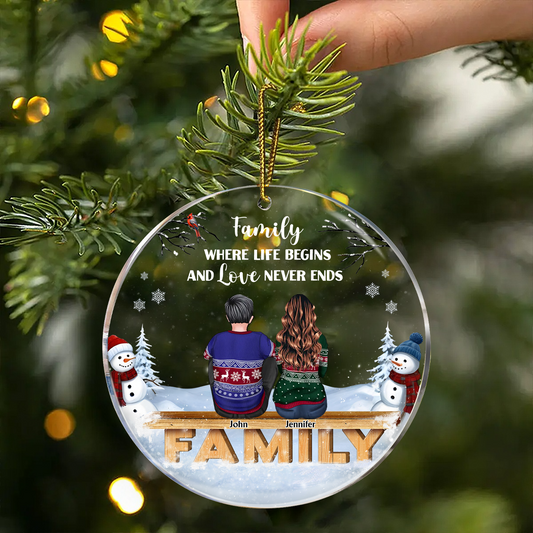 Family Where Begins And Love Never Ends - Memorial Gift - Christmas Gift - Personalized Custom Medallion Acrylic Ornament
