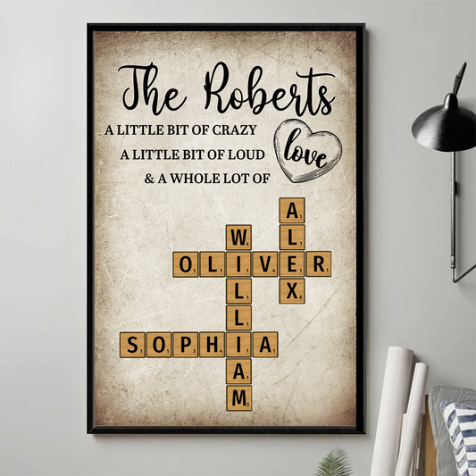 Family Whole Lot Of Love Heart Crossword Art Puzzle Create A Moment Treasured Forever Personalized Poster