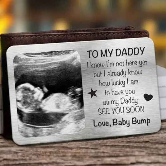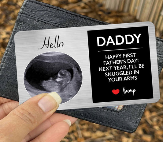 Father - Next Year I'll Be Snuggled In Your Arms - Personalized Photo Aluminum Wallet Card