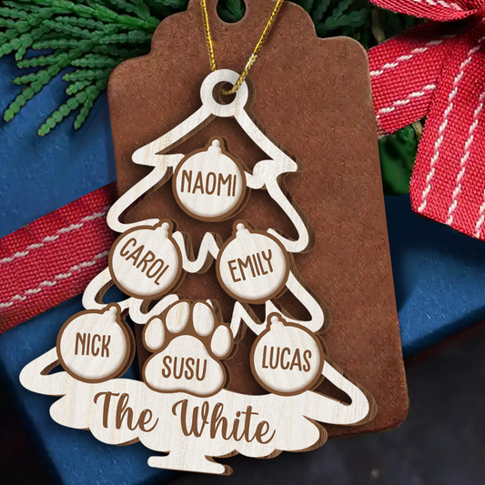Family Tree With Pet Christmas Icon - Personalized 2-Layered Mix Ornament