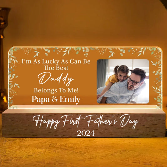 Father - I'm As Lucky As Can Be The Best Daddy Belongs To Me - Personalized Acrylic LED Lamp Night Light