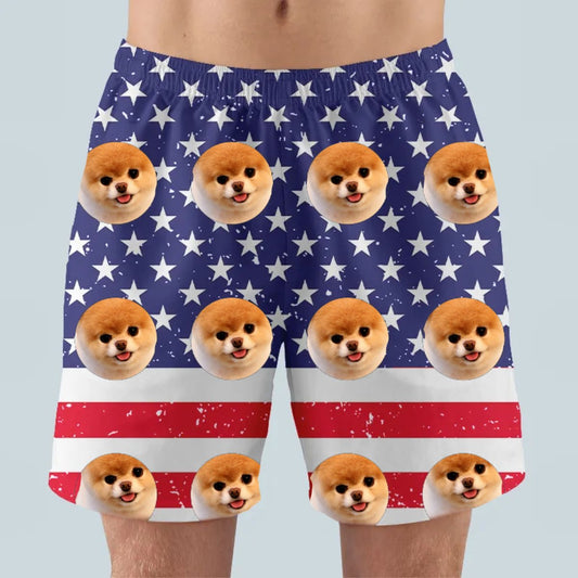 Father's Day - Custom Photo America Flag - Personalized Beach Short