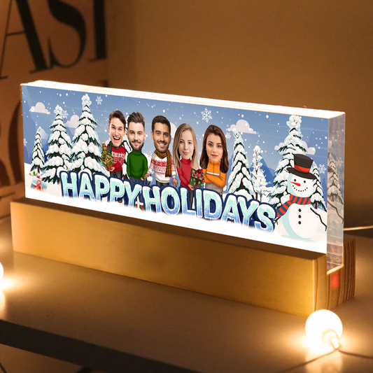 Happy Holiday Funny Family, Custom Photo, Personalized Family Photo Acrylic Block LED Night Light, Family Keepsake