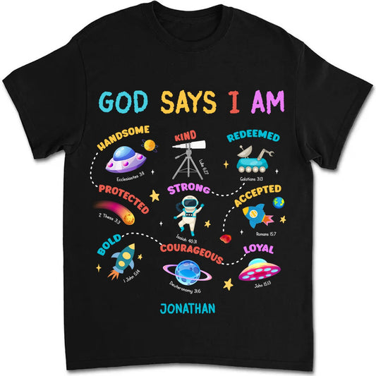 Grandson - God Says I Am Space Theme - Personalized Unisex T-Shirt