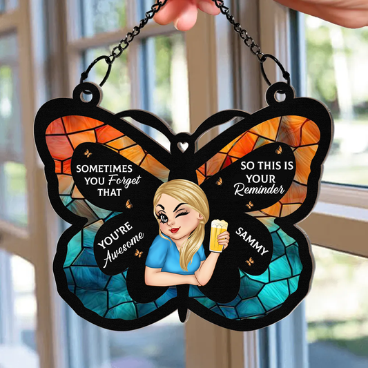 Sometimes You Forget That You're Awesome - Personalized Window Hanging Suncatcher Ornament