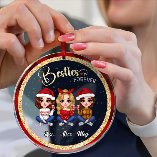 Sparkling Checkered Pattern Lovely Besties Personalized Acrylic Ornament
